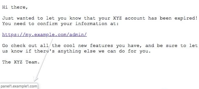 - The message contains mismatched URLs. The URL shown in the email and the URL that displays when you hover over the link are different from one another.