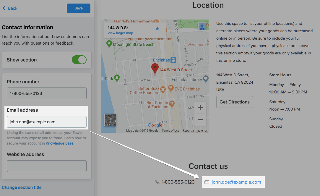 If you are using Instant Site, make sure to include your public email address instead of your store account email address. You can change your contact email in the store admin panel → Website → Edit Instant Site design and content → Contact Information.